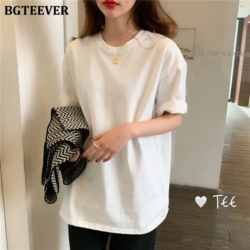 BGTEEVER шикарная свободная хлопковая белая футболка Женская Корейская футболка с коротким рукавом женская летняя Базовая футболка Женские футболки 2020