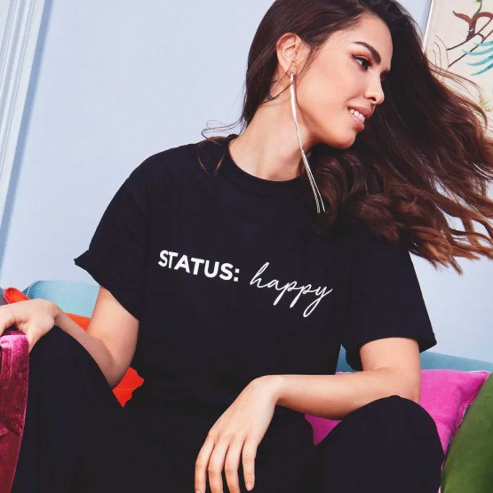 Женская футболка с коротким рукавом и круглым вырезом Happy Letter, свободная футболка 2020, летняя женская футболка, Топы, Camisetas Mujer
