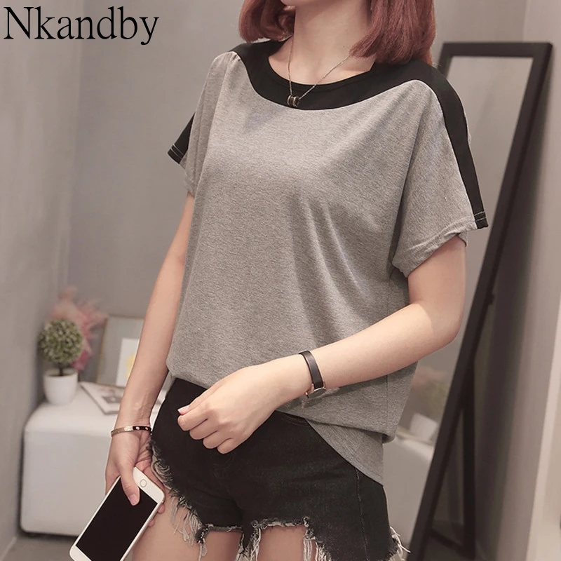 Большие размеры, Лоскутные Топы, футболка te 2020, летние женские повседневные свободные футболки с рукавами «летучая мышь», большие размеры, хлопковая Базовая футболка в Корейском стиле