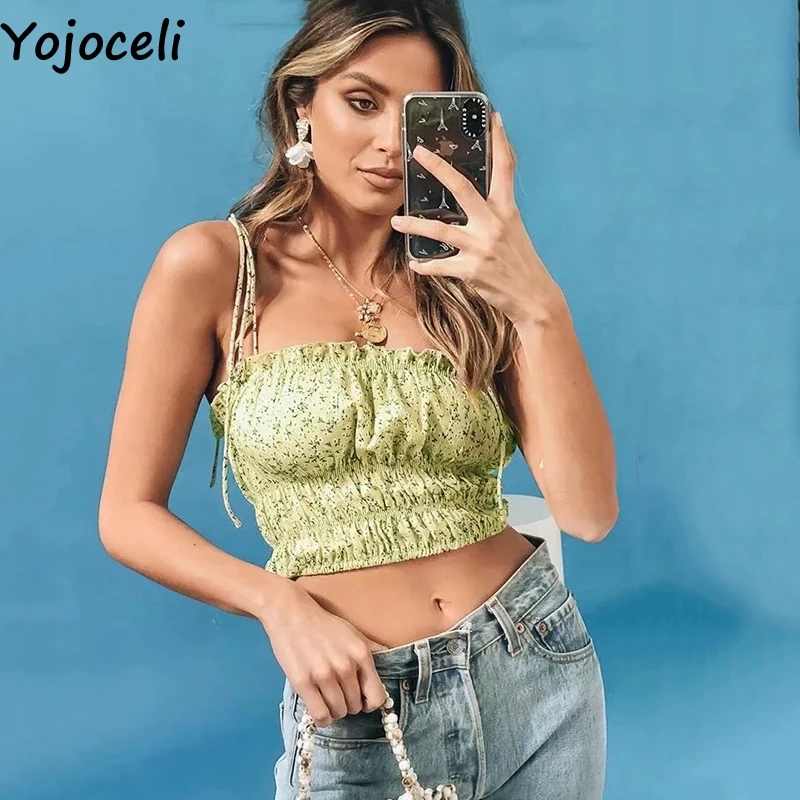 Yojoceli, сексуальные короткие пляжные майки с принтом, женские летние элегантные майки с открытыми плечами, повседневные милые повседневные женские топы