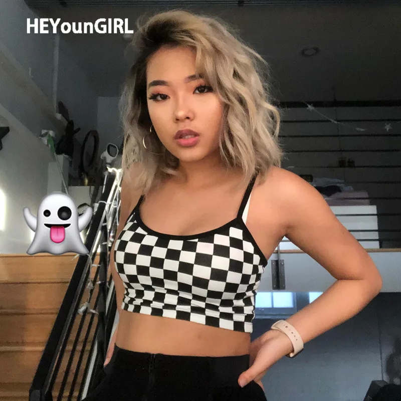 HEYounGIRL Повседневный шахматный топ на тонких бретелях для женщин Sulmmer без рукавов Cami Топы тройники с открытой спиной Сексуальная уличная одежда кроп-топ