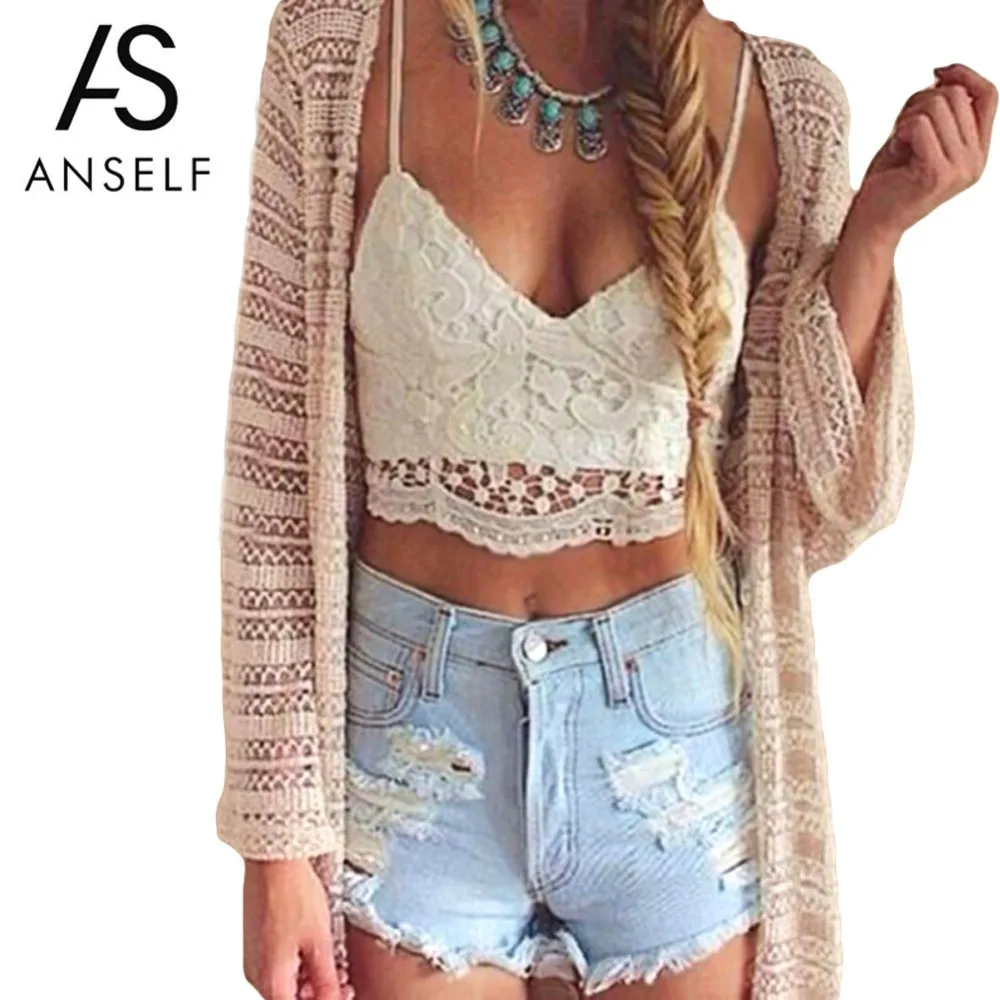 ANSELF 2019 Летний Новый сексуальный женский хлопковый топ на бретельках связанный крючком бюстгальтер Глубокий v-образный вырез Спагетти ремен...