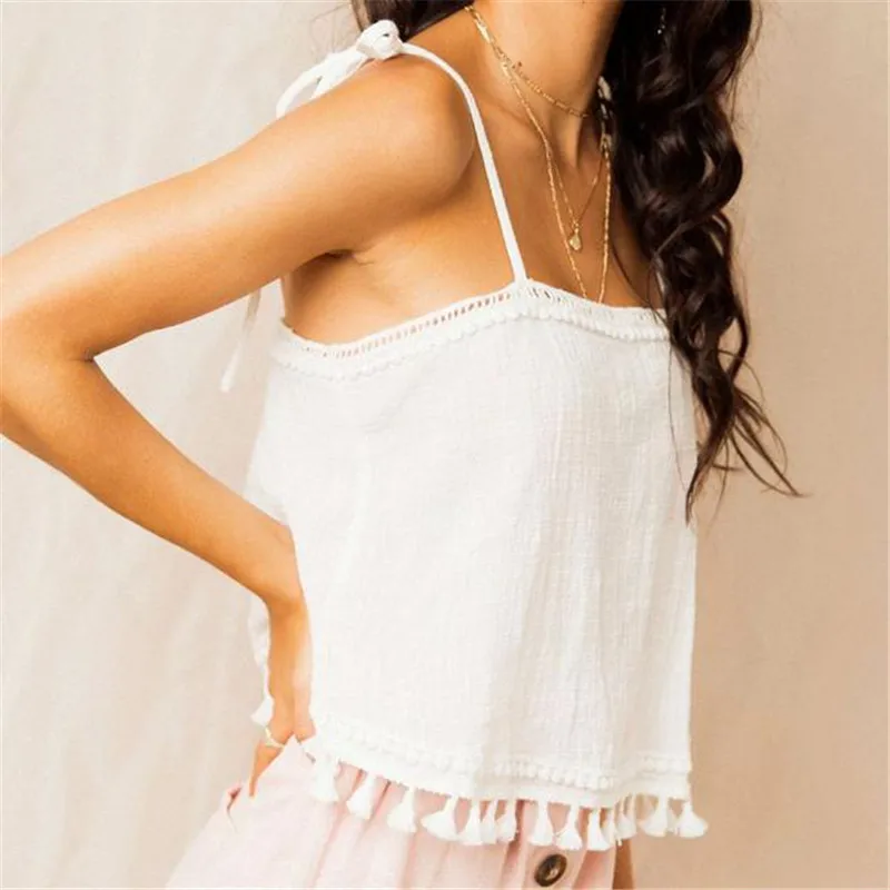 2019 женский топ на бретельках, подвязка для ребенка, Camis, женская повседневная майка с кисточками, однотонный жилет без рукавов, Женская майка