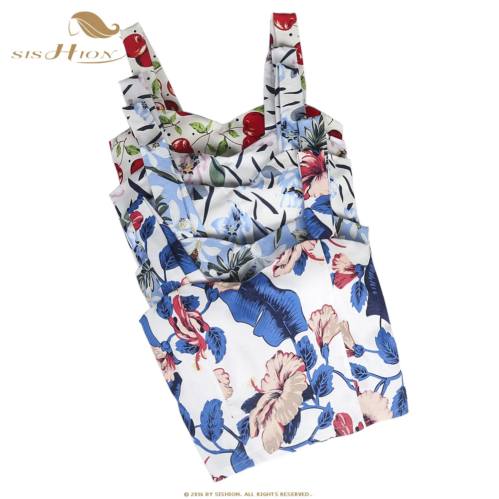 SISHION сексуальный укороченный Топ женский 2019 винтажный белый топ на бретелях VT0006 Вишневый цветочный принт черный розовый узкий ремешок Топ