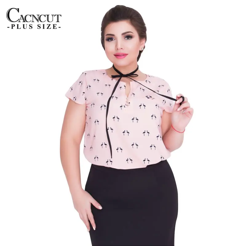 Cacncut модный принт большого размера Для женщин летние топы 2018 плюс Размеры шифон офисная Футболка женская одежда с Кофты с галстуком-бабочко...