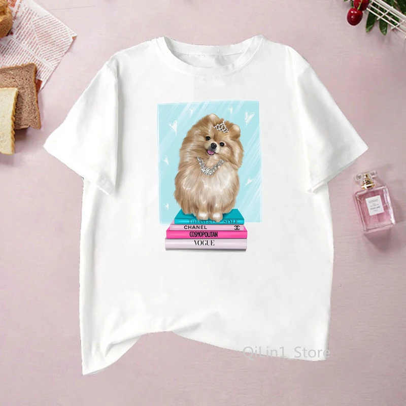 Модная Милая футболка с принтом померанских книг, Женская Футболка harajuku kawaii, футболка для любителей собак, Женская белая уличная футболка