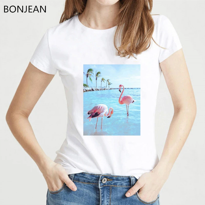 Новая летняя стильная футболка Женская милая Футболка с принтом Фламинго с водой Женская Футболка harajuku kawaii женская рубашка mujer