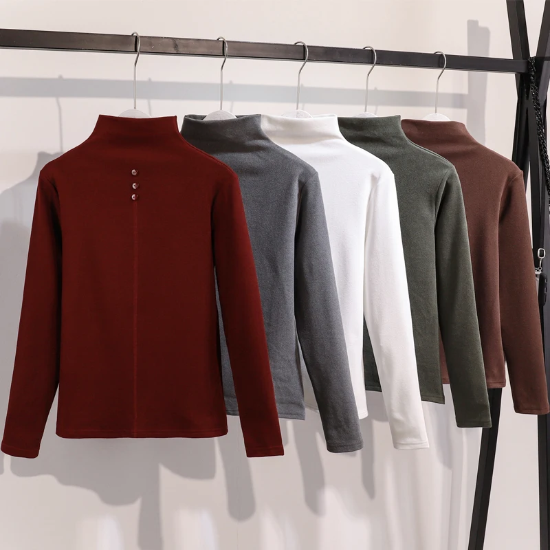 Облегающая футболка с высоким воротником, Офисная Женская одежда, простая футболка с высоким воротником и длинным рукавом, Женская осенне-з...