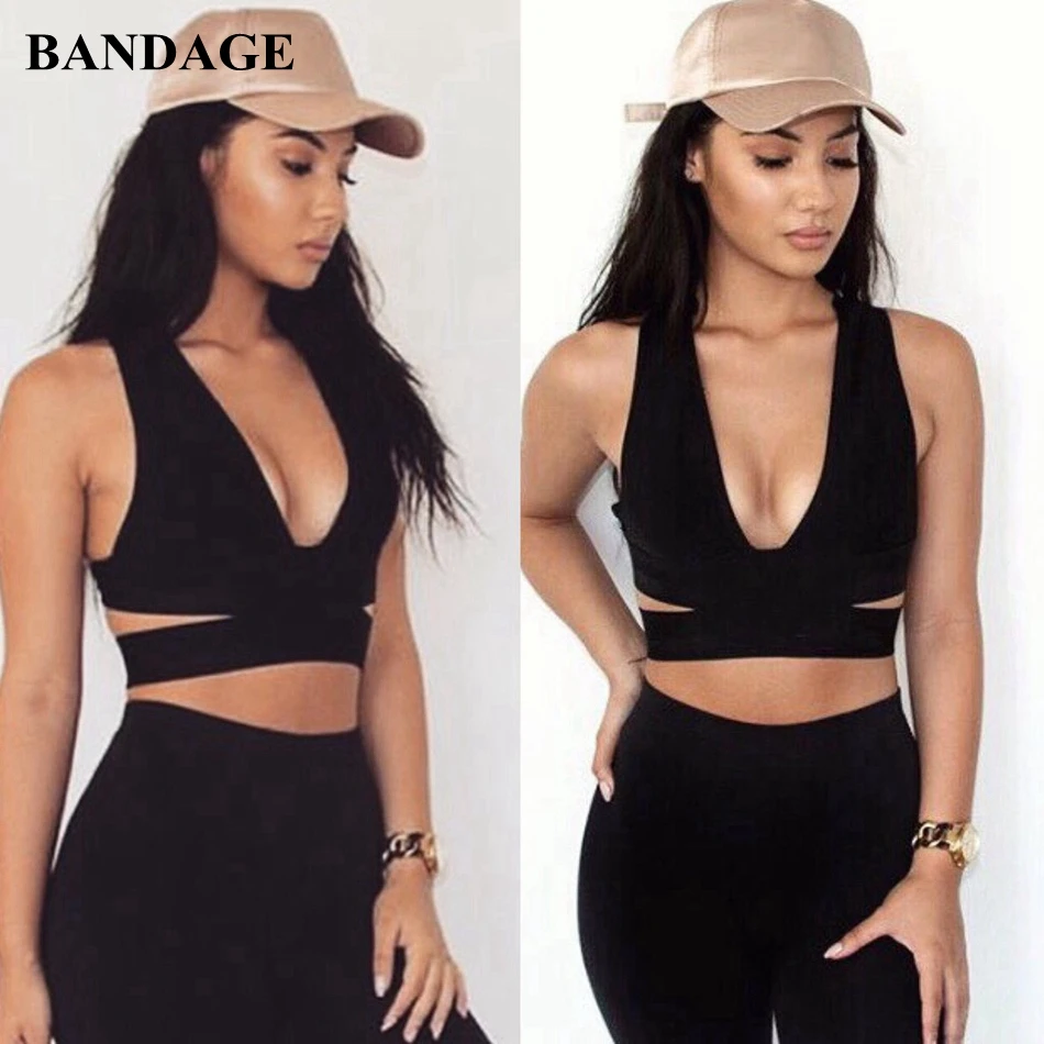 Пикантные глубоким v-образным вырезом Для женщин бандажный топ с бретельками короткие спинки Bodycon Vestidos знаменитости вечерние Клубные Вечер...
