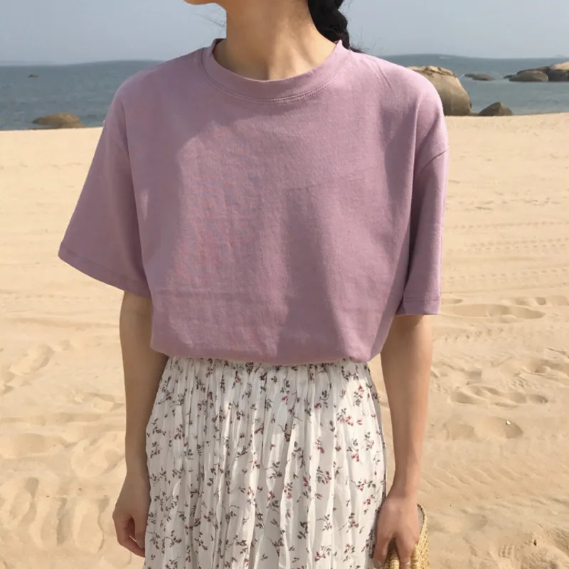 WOTWOY Лето 9 цветов плюс размер S-4XL футболки женские с круглым вырезом короткий рукав дышащие мягкие футболки женские топы черный розовый T shiirt
