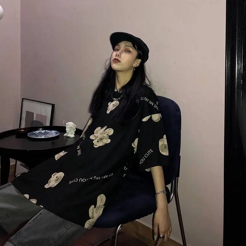 Женские футболки с изображением японского медведя, уличная футболка в стиле Харадзюку, летняя черная Милая футболка для женщин, Kawaii, японские футболки, топы для девочек, 2020