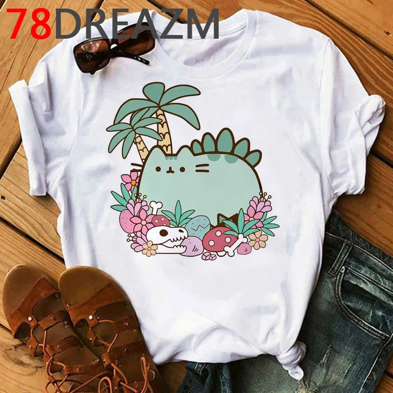 Kawaii Pusheen Cat футболка женский летний топ плюс размер футболка забавный кот Графический мультфильм футболка гранж одежда ulzzang женский