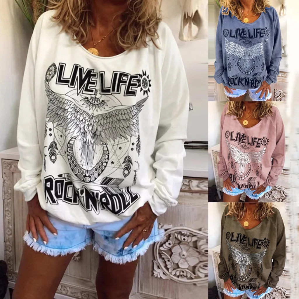 Футболка женская модная с буквенным принтом с большим крылом, с длинными рукавами и круглым воротником, свободные Осенние Топы, женская одежда, футболка