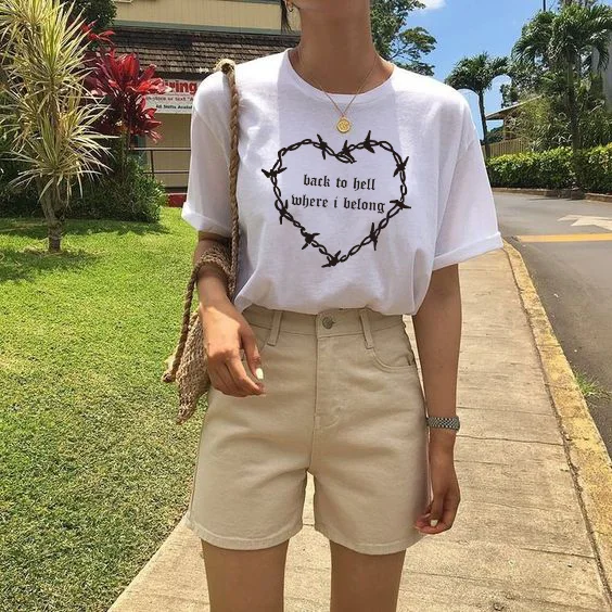 Женская футболка Kuakuayu HJN Back To Hell, модная футболка с готическим рисунком, Повседневная футболка с короткими рукавами, 90s