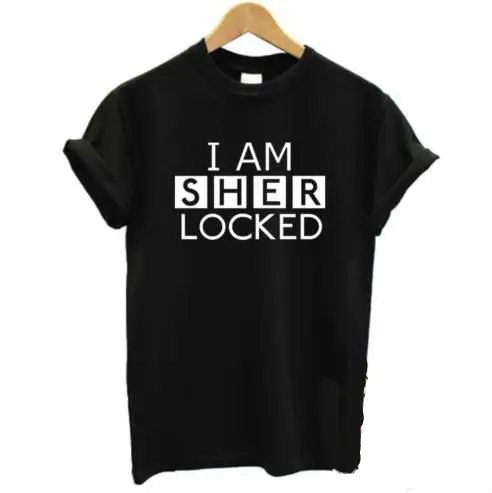 Я Шерлок женский с надписью Футболка Повседневная хлопковая хипстерская рубашка для леди Забавный Топ Футболка Черная B-58