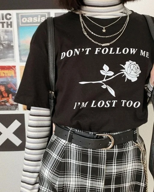 Kuakuayu HJN Don't Follow Me I'm Lost Too Letter Rose Printed T Shirt Cotton Fashion Street Style Outfits for Female