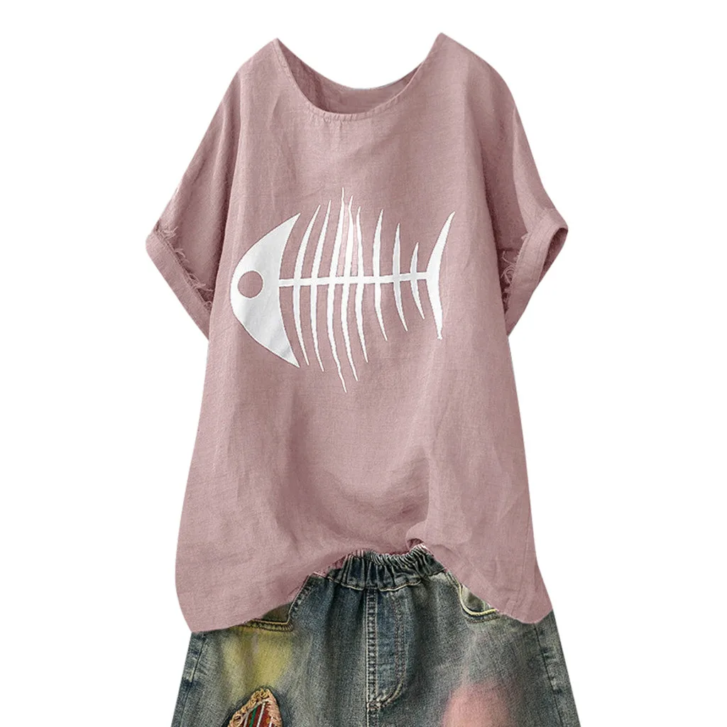 SAGACE для женщин Футболка Веселая 2019 повседневное Твердые рыбья кость печати свободные короткий рукав рубашка Забавные топы корректирующие ...
