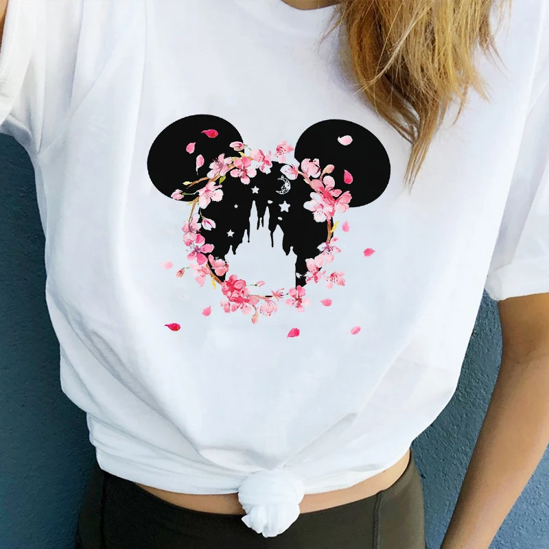 Женская одежда Летний цветок уха Цветочный Сладкий Любовь модный принт дамы печатных женщин Топ Повседневная Женская футболка T женская фу...