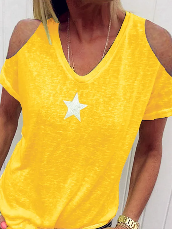 Женские футболки со звездами, женские летние топы с v-образным вырезом, повседневные Топы Boho из хлопка с вырезами, кружевные женские футболки размера плюс, 2020