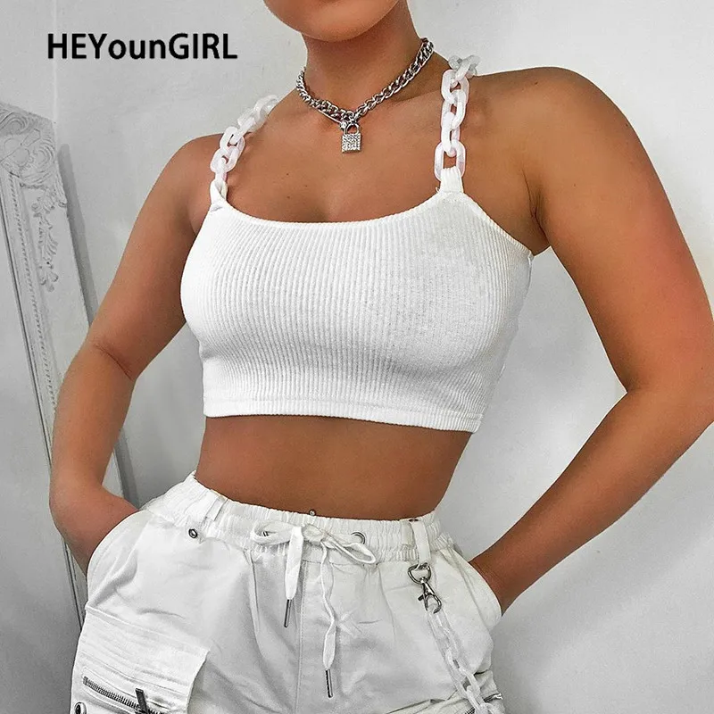 HEYounGIRL Повседневный Harajuku Топ без рукавов с цепочками, Женский Белый Модный укороченный топ с открытой спиной, мини-жилет в стиле панк, уличная одежда 2020