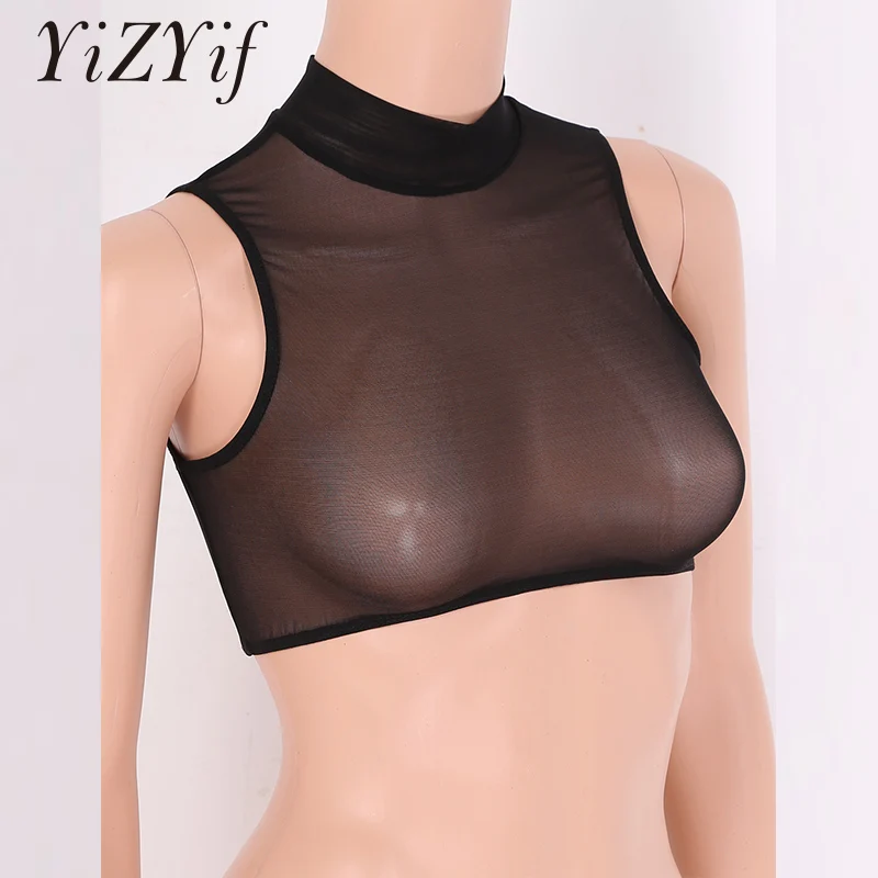 Женский укороченный топ сексуальная майка Сетка прозрачные топы для женщин Круглый вырез без рукавов Бралетт короткий топ фестивальный ре...