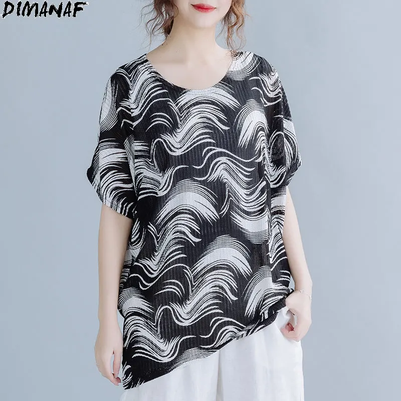 Женская футболка DIMANAF, Повседневная Свободная Винтажная Футболка большого размера с винтажным принтом, туника 2020
