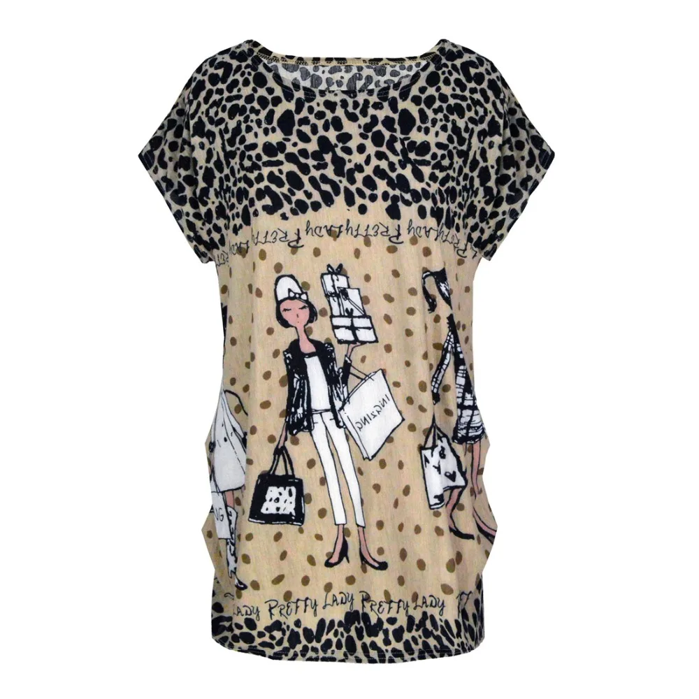 Новинка 2019 весна лето женские повседневные принты с коротким рукавом с круглым вырезом Топы И Футболки плюс размер свободные футболки Туни...