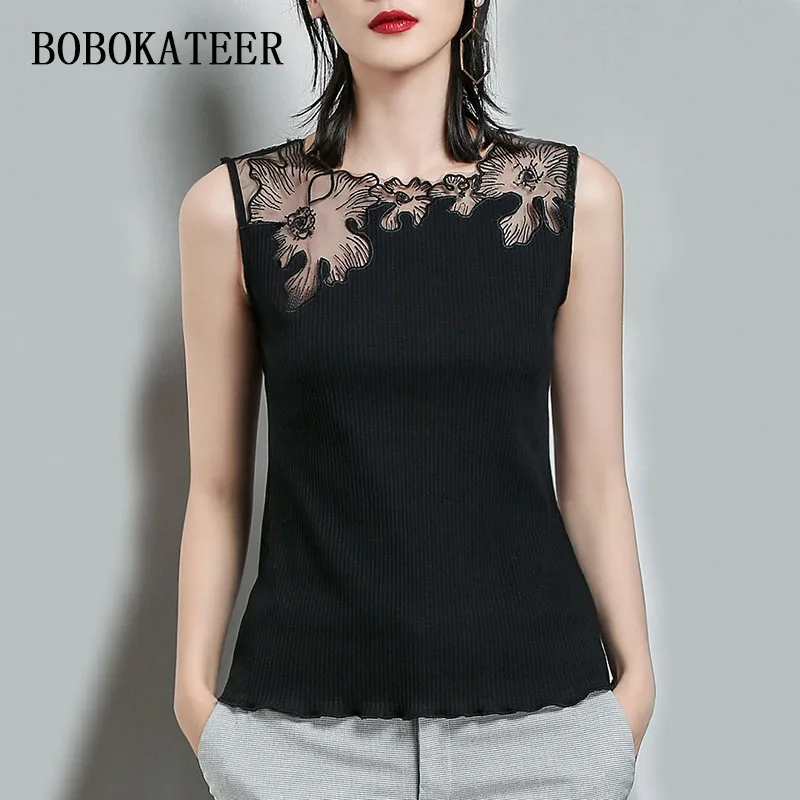 Женская Офисная трикотажная футболка без рукавов для девушек, жилет, новый летний женский пуловер с высоким воротником, базовая майка, руба...