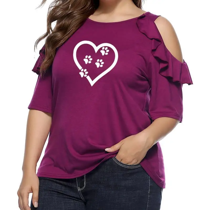 2018 женская футболка мода Лапа собаки, кошки сердце милый узор Панк Лето o-образным вырезом гофрированная строчка без бретелек Свободная Жен...
