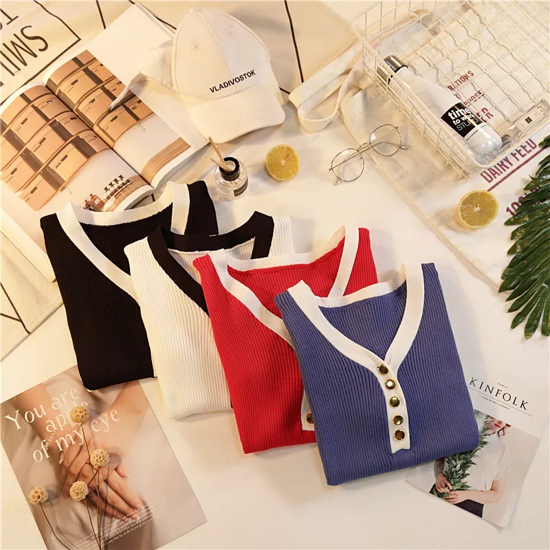 HELIAR, v-образный вырез, на пуговицах, Вязанная женская футболка с пуговицами, женская модная Однотонная футболка, короткий рукав, 2020, летняя женская футболка