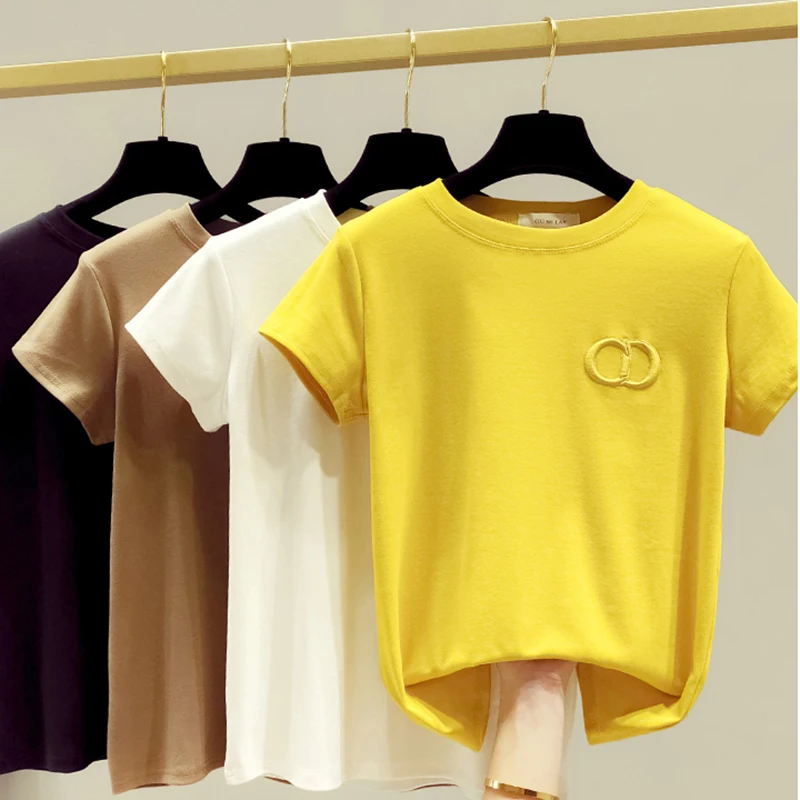 GGRIGHT 2020 новые высококачественные женские футболки с вышивкой, большие размеры, повседневные хлопковые футболки с круглым вырезом, женские белые Топы Harajuku