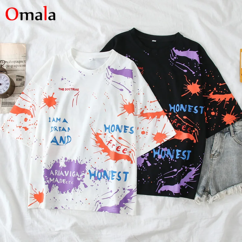 Новое поступление, летняя хлопковая футболка, корейский стиль, принт с буквами, большие размеры, белые футболки с короткими рукавами, harajuku, повседневные Черные футболки, топы