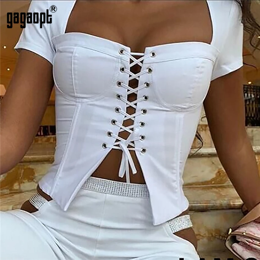 Gagaopt 3 цвета летние короткий рукав укороченный Топы для женщин Мода кружево до Топы корректирующие пикантные Топы корректирующи