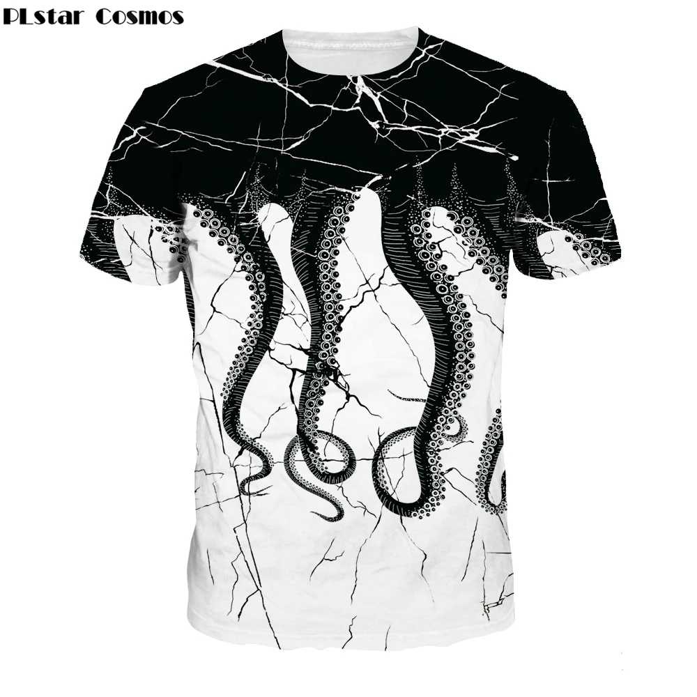 PLstar Cosmos 2019 летняя новая стильная футболка с принтом осьминога щупальца мужские футболки женские футболки Harajuku топы Прямая доставка