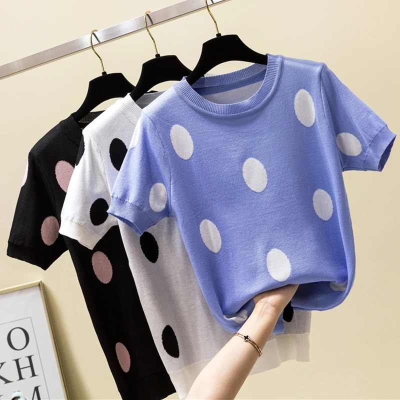 Футболка в горошек shintimes Женская, летняя повседневная трикотажная футболка из хлопка, 2020
