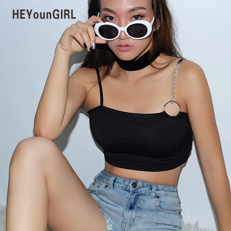 HEYounGIRL/летний топ на бретельках для женщин, черный укороченный топ без рукавов, Повседневная модная майка, Короткие топы, футболки, рубашка в стиле панк