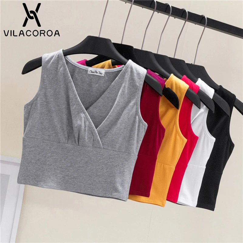 Женские сексуальные топы на бретелях с v-образным вырезом без рукавов, Простые Летние повседневные короткие однотонные модные 2019 женские то...