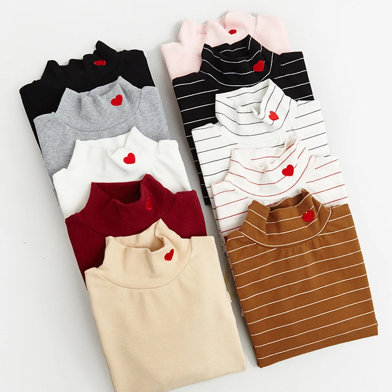 Женская футболка с вышивкой в виде сердца в стиле Харадзюку, корейский эластичный плотный высокий воротник, базовая тонкая футболка, женски...