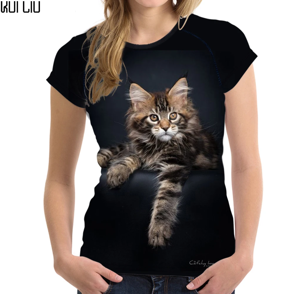 Индивидуальная брендовая одежда, летняя женская футболка с коротким рукавом, с принтом кота, женские эластичные топы, футболка, женская футболка