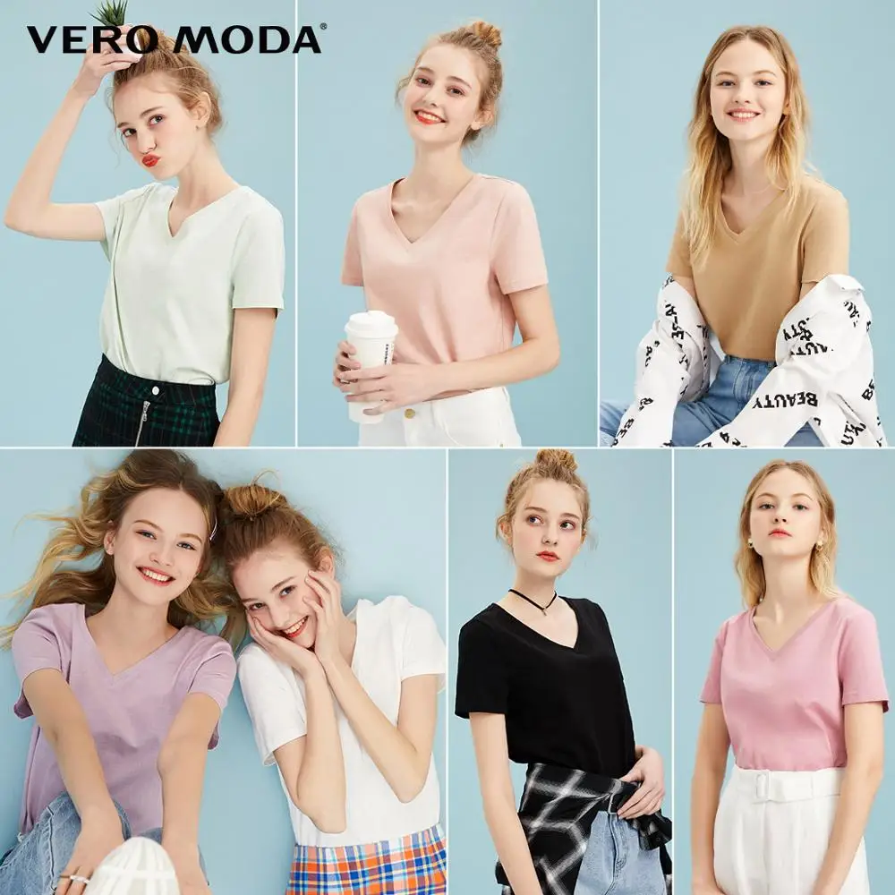 Женская простая футболка с v-образным вырезом Vero Moda, 100% хлопок, 320101514