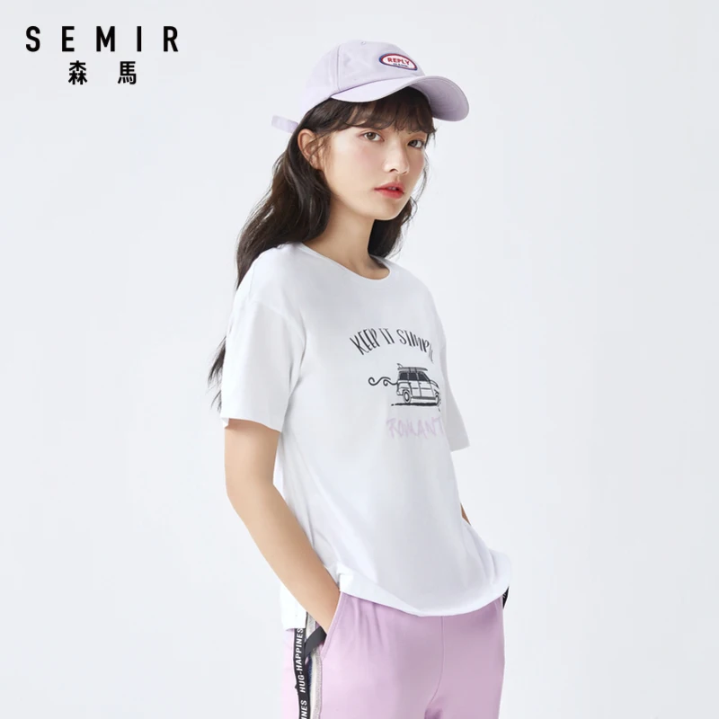 Женская хлопковая футболка с короткими рукавами Semir, удобный летний топ с буквенным принтом, новый пуловер с круглым вырезом