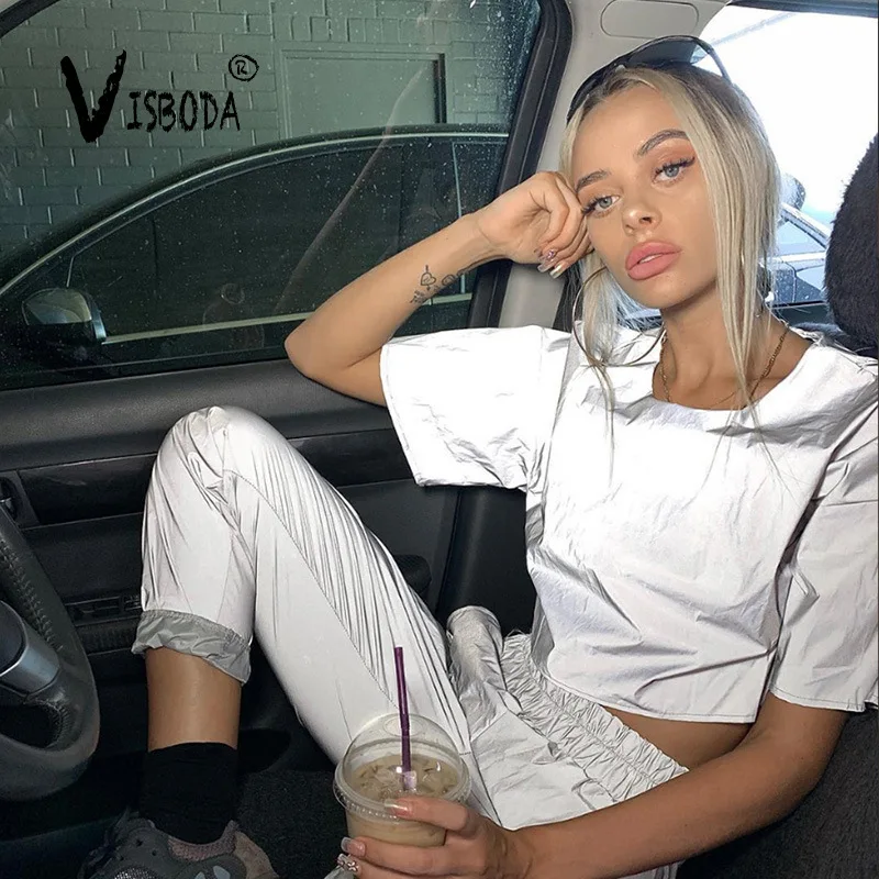 Женская Повседневная футболка Harakuju, свободная Светоотражающая футболка с коротким рукавом, 2020
