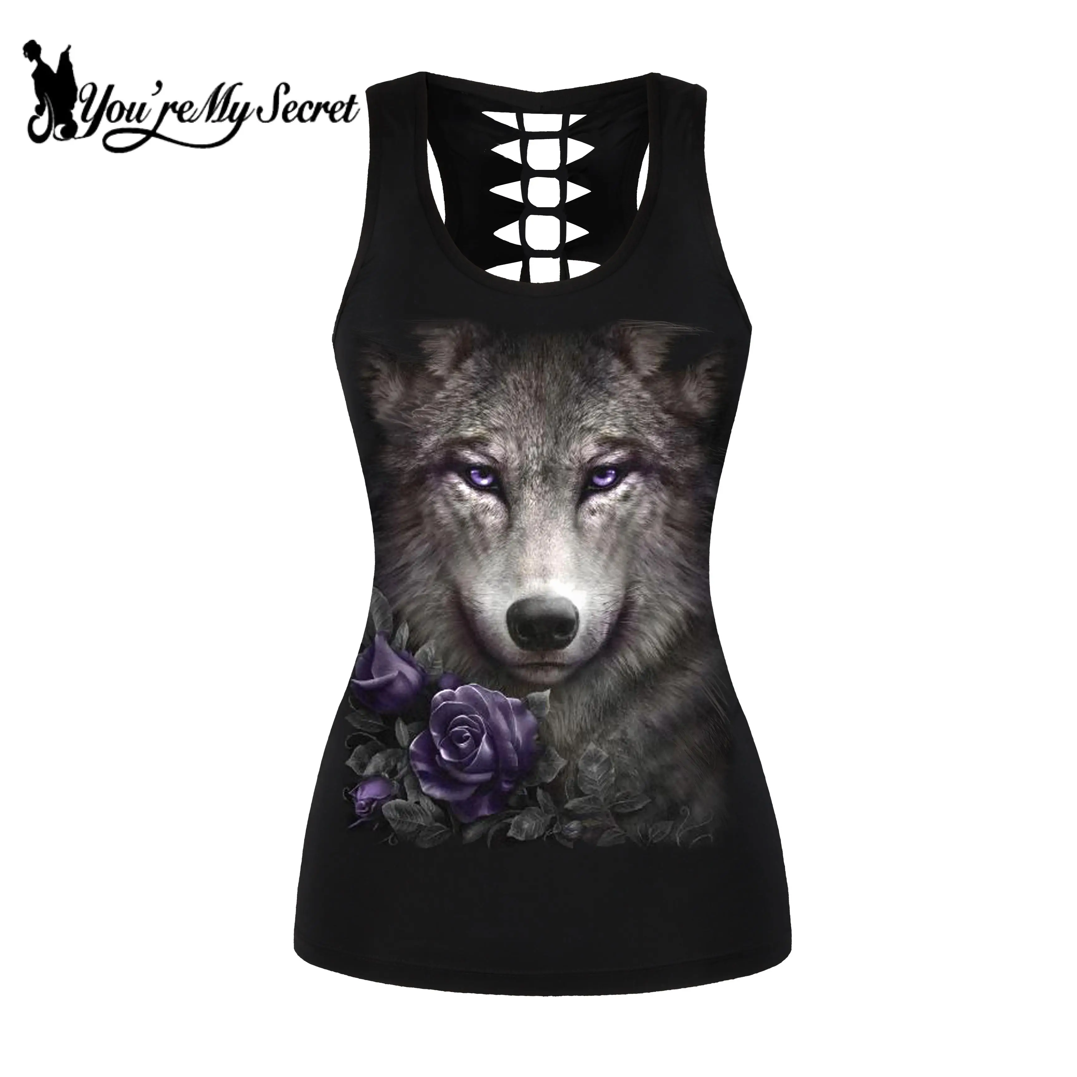 [You're My Secret] женский летний топ на бретелях с принтом волка Панк Топ без спины черный Открытый Топ сексуальный жилет для фитнеса одежда