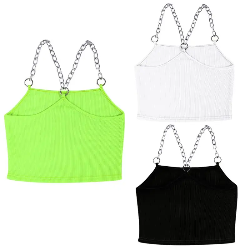 Женский ребристый ТРИКОТАЖНЫЙ УКОРОЧЕННЫЙ ТОП в стиле панк, металлический ремешок-цепочка, сексуальный камзол, жилет, черный, зеленый, белый