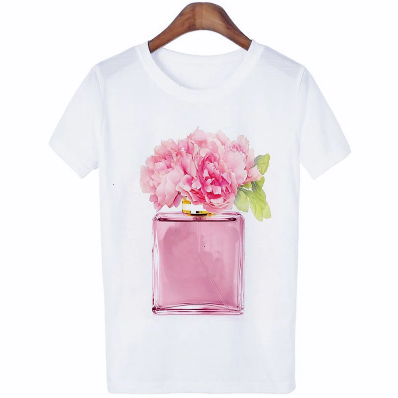 Свежий цветок флакон духов футболка Женская Harajuku Готический корейский стиль эстетический размера плюс короткий рукав хлопок уличная одежд...