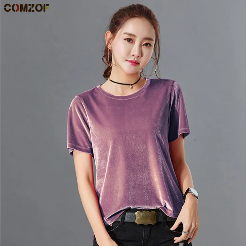 9 цветов, Женская бархатная футболка с круглым вырезом, короткий рукав, весна-лето, Топ для женщин, повседневная, базовый слой, велюровая футб...