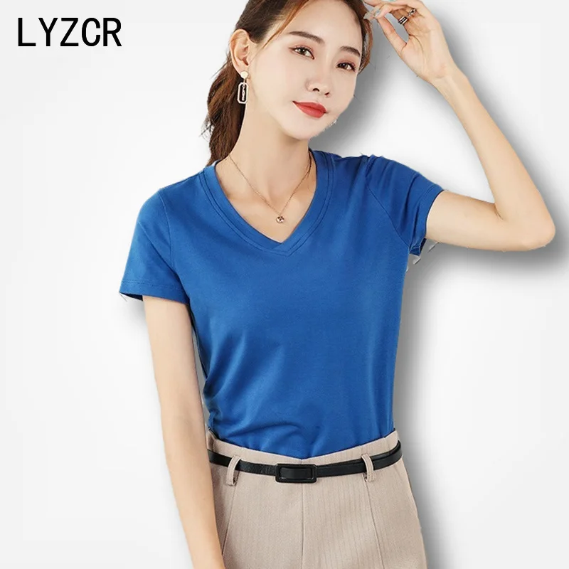 LYZCR, 15 ярких цветов, женская футболка, хлопок, летняя, базовая футболка, женская, плюс размер, 4XL, простая футболка, женские футболки с коротким рукавом