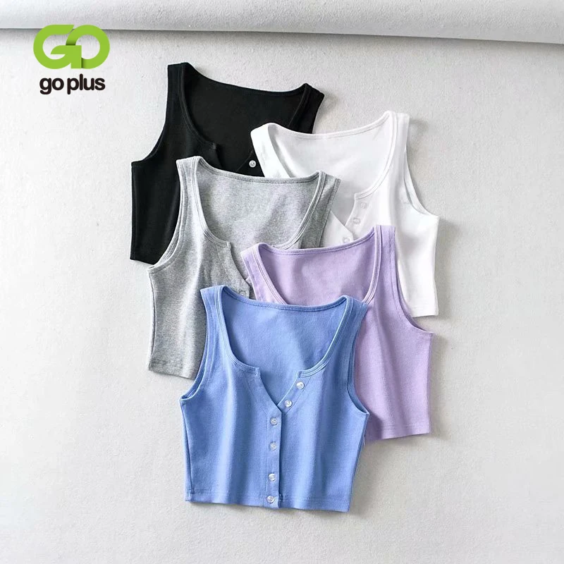 Женский укороченный топ GOPLUS, летний однотонный топ без рукавов с v-образным вырезом, женская одежда, уличная одежда