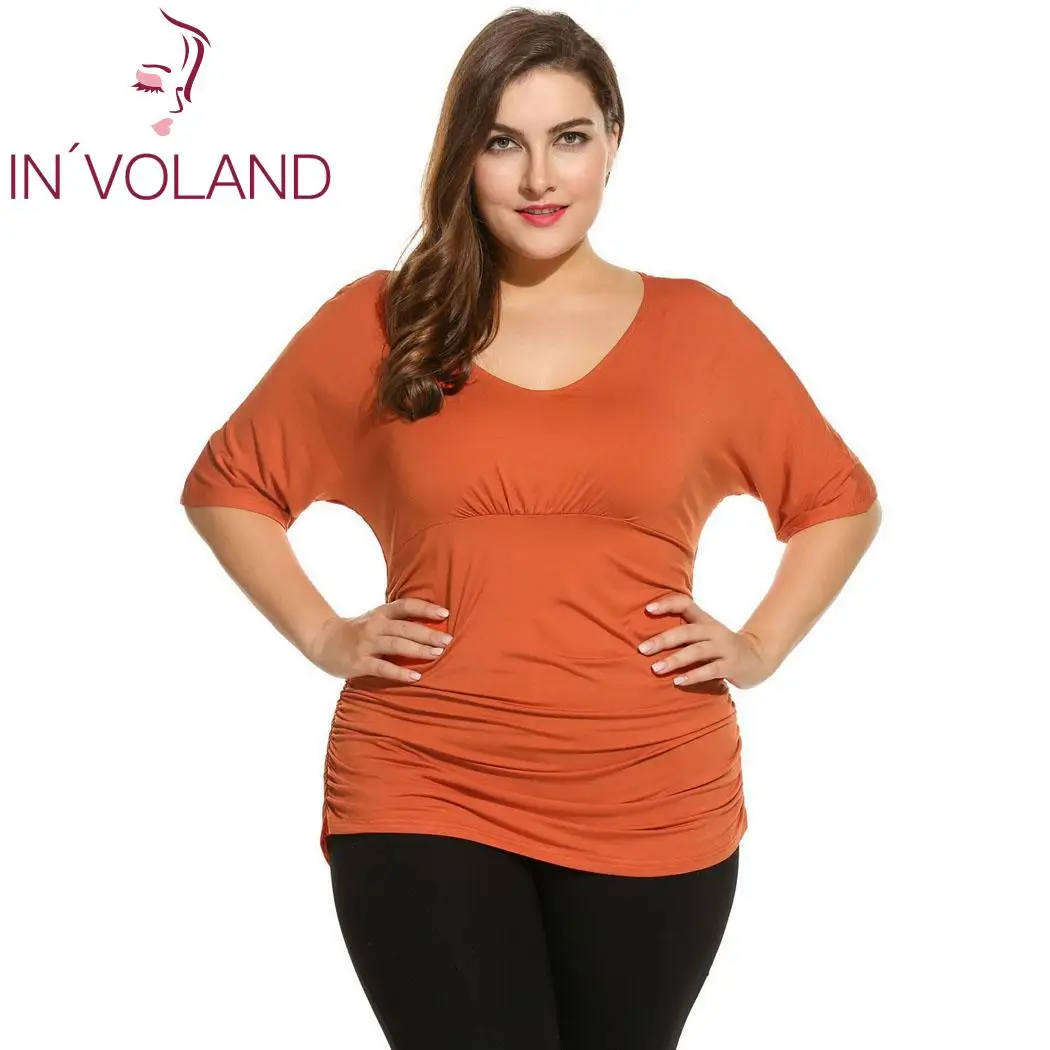 Летние футболки размера плюс, женские повседневные футболки с коротким рукавом и v-образным вырезом, плиссированная Талия, одноцветные футболки размера плюс, женская одежда, XL-4XL