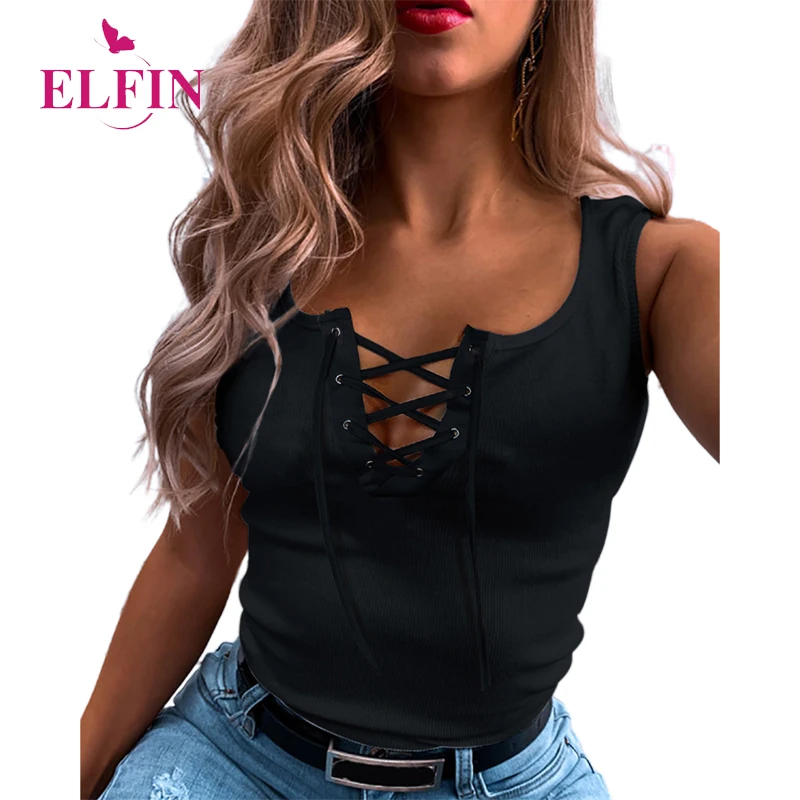 Черный сексуальный перекрестный бандаж без рукавов Женская летняя одежда джемпер Топы Femme панк ночной клуб Повседневный тонкий жилет SJ6034R